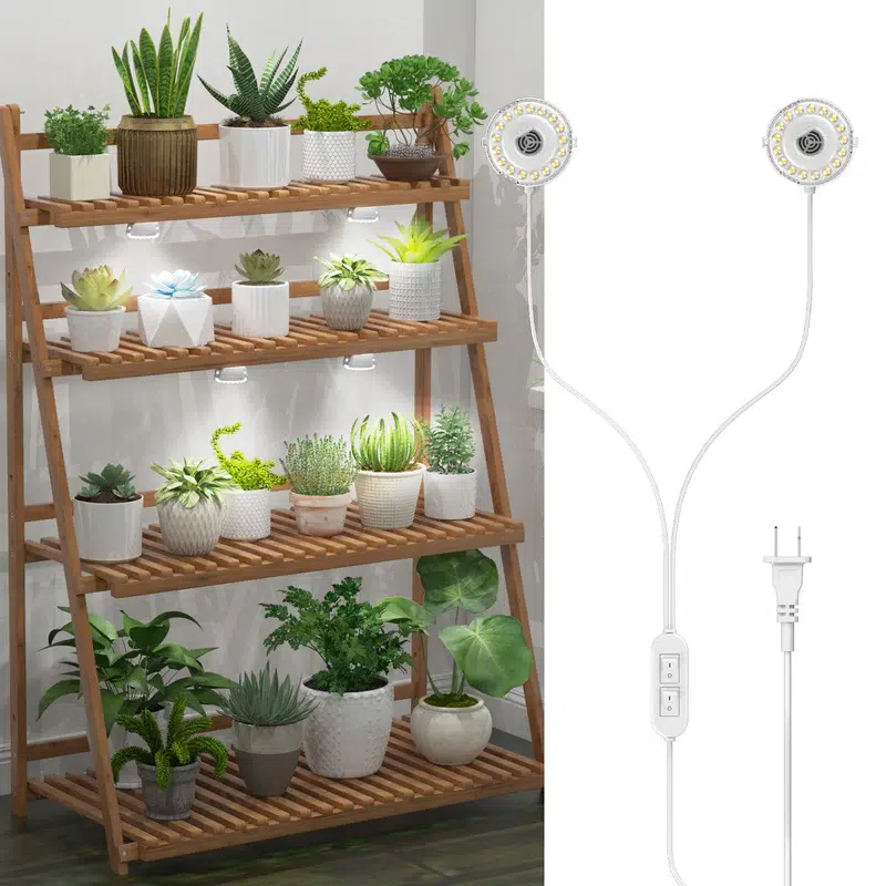 Lightweight and versatile, the SANSI 2-Head LED Grow Light is ideal for plant shelves, cabinets, walls, greenhouses, and home or office spaces. The 71-inch (1.8 m) power cord provides ample length for indoor use. Comes with double-sided tape and zip ties for simple, DIY installation.