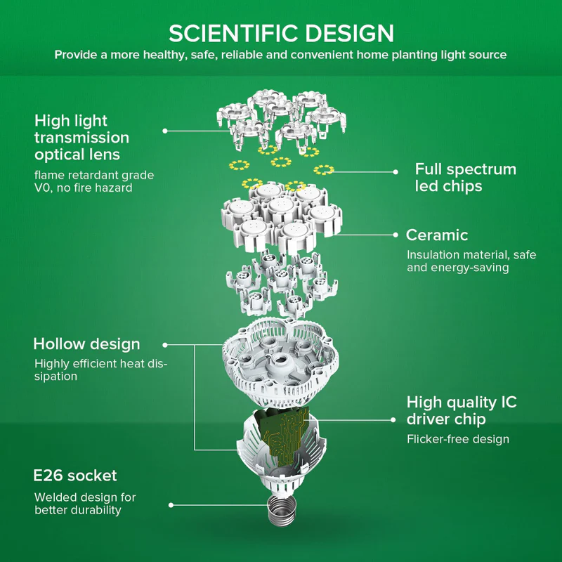- Provides a full-spectrum light (400nm-780nm) ideal for all growth stages of plants.